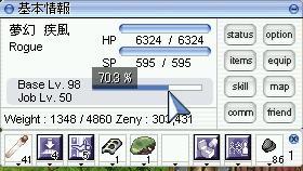 特に忙しかったわけじゃないけど、かといって書くこともなかったんだよね。 うん、いい訳です。 教授は今Lv72で@5%ぐらいで73。 臨時も全然ないし、ちょっと予定より早いけど教授の育成を一時休止して、前から作りたかったチェイサーを作ることにしました。 20日(水)の16時頃にノビを作成して、スポアで即転職。 転職後はウルフでBASE40まで上げてその後氷D1Fでシロマ狩りでG狩りの始まる22時までにJOB40になって、G狩り終了後ぼーっとしてたあとサクっと転職と、一日でローグへ。 その後シロマに篭って69になり、現在スリッパで育成中。 現在Lv76と、かなりハイペースで進んでるね。 今月中に90台いけんじゃね?と若干期待してます。 てか、スリッパいいね、スリッパ。分かってちゃいたけど、あんなに金銭効率いいとねー。 今ドロップ1.5倍なのもあって、1hで地塊150個ほど拾えるし、チヂミ+宿狩りだけど大体時給で500kぐらいの利益なのかな?細かいところは分からないけど。 金曜買った分だけで4mぐらいの収入に。 氷D篭るまでに10m以上稼げそうでwktkが止まりません。 ま、来月中に転生できるように頑張ります。 あ、そうそう。シロマ狩りするために水特化グラ作ったんだけど Lv69になって、スリッパ装備に変えようと倉庫を開いたらそこには装備しているはずの水特化グラが・・・。 おかしいなぁと思って自分の装備を見てみると、装備してたのはTHグラでした。 俺・・・なんのために作ったんだ? 1mも無駄遣いしちゃったじゃんか! はい、こんばんわ。